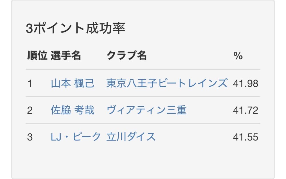 なんと3p確率がリーグで1位という状況です。