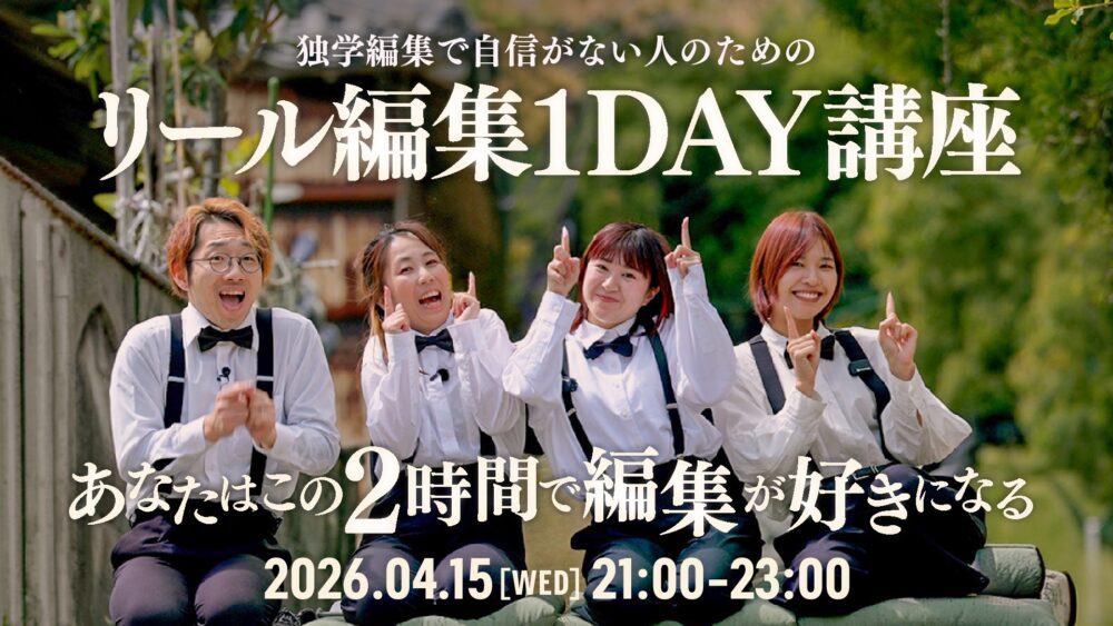 「リール編集1DAY講座」というオンラインセミナーです。